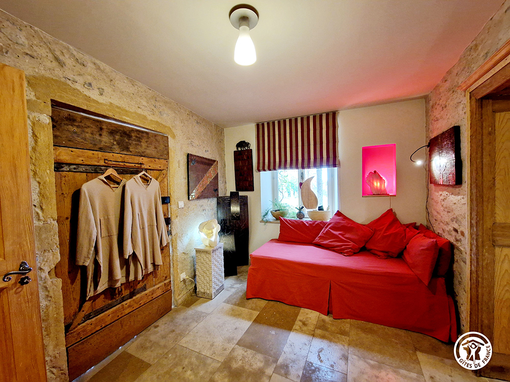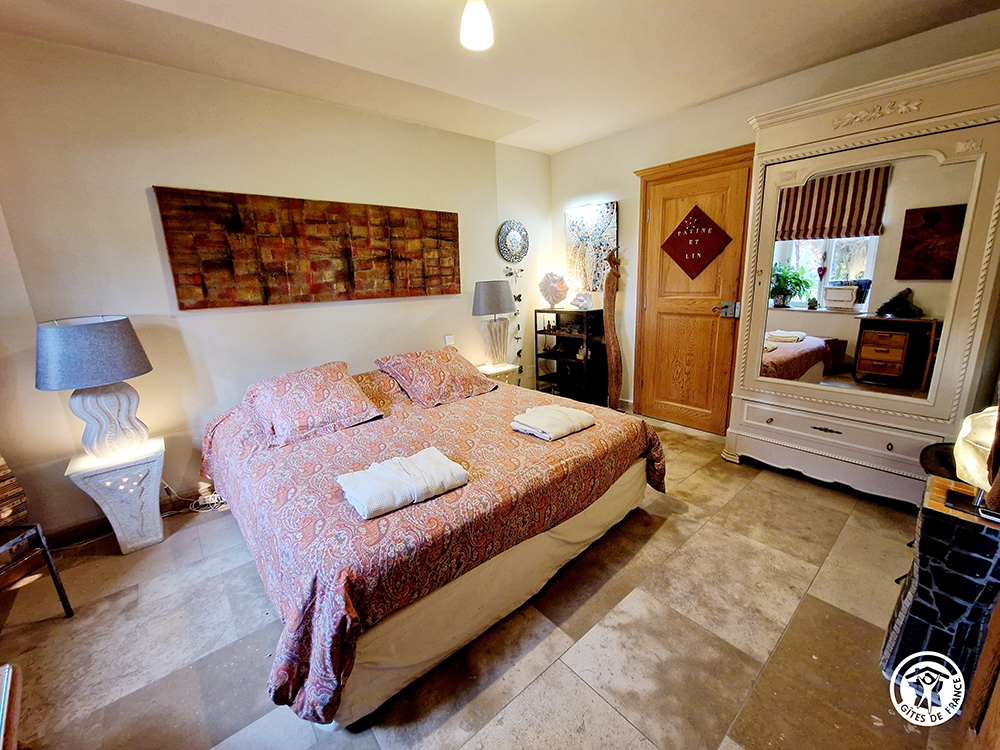 Elle dispose d'un lit de 1,80 x 2 m et d'une antichambre