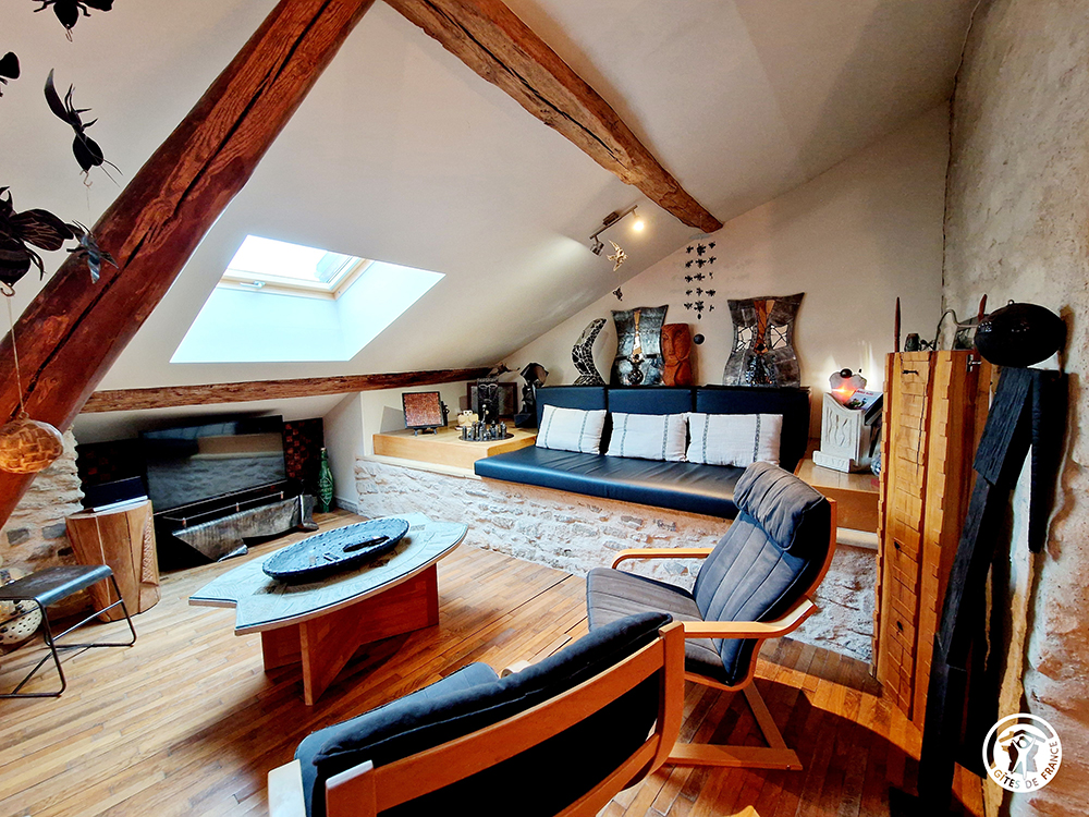 - Un coin salon sur mezzanine avec TV